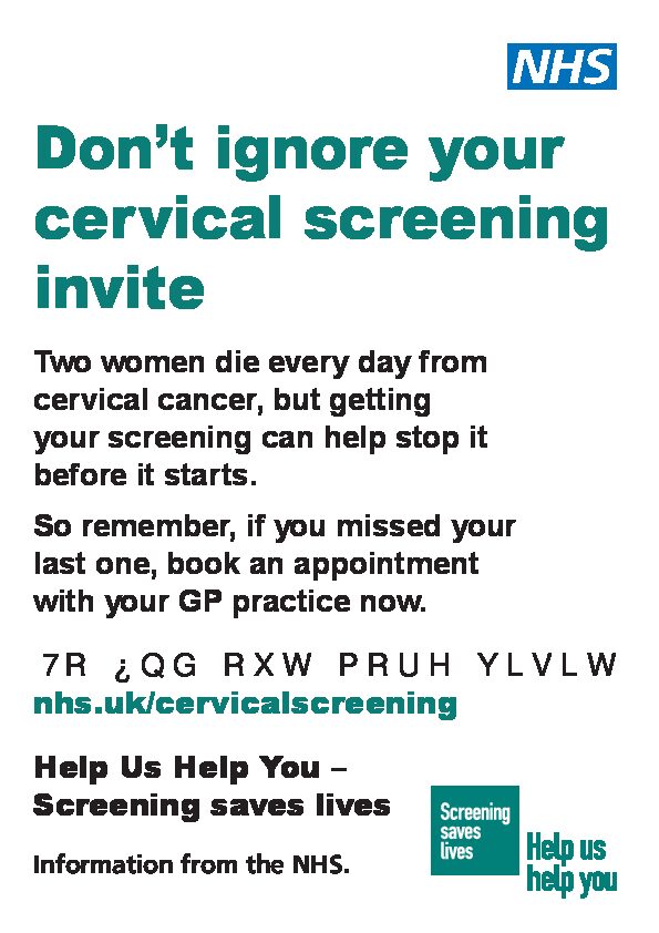 We strongly urge that if you have received a letter or text message inviting you in for your cervical screening, that you call the surgery to make an appointment.